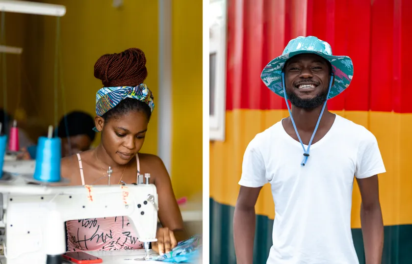 雇用創出を目的とした自社工場をアフリカにて運営し、アフリカ伝統の生地や素材を使用しながら商品を展開。NPOを通じてアフリカの雇用・教育・健康のための活動に直接還元し、持続可能な循環型ビジネスを実現する。