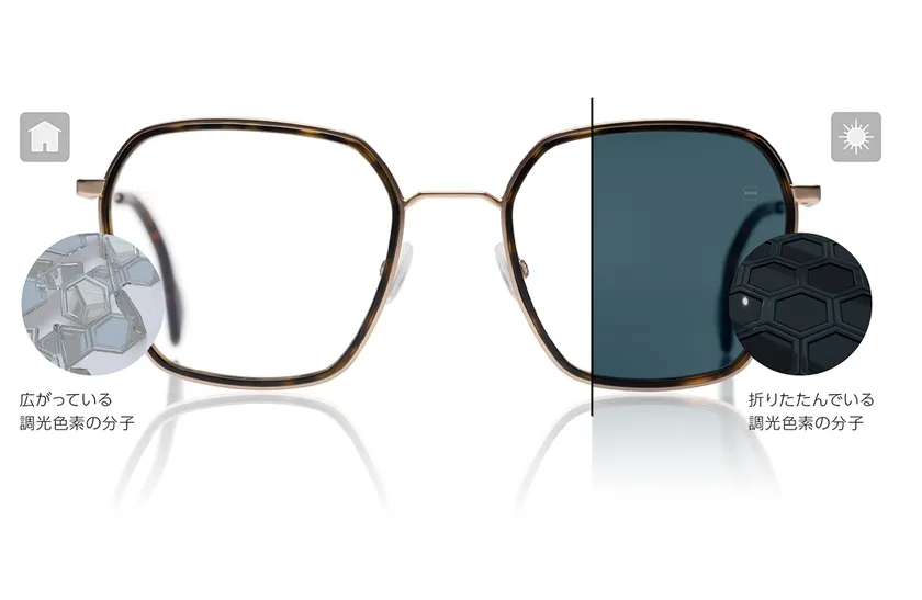 屋外と屋内を行き来するときに、透明なメガネとサングラスの2つを掛け替える必要がなく、1つのメガネであらゆる光の状況に対応できること。それが、長年にわたって調光レンズが提供してきたものです。