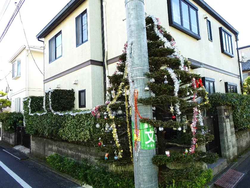 自分たちが楽しむだけでなく近隣への気配りも忘れず、庭の緑を育てる柴田さんご夫妻。家の前を通って登園する幼稚園に通う子どもたちとのコミュニケーションも楽しみの一つで、子どもたちに喜んでもらおうと、毎年12月になると、大きく成長した立派なモミノキに、昼間も楽しめるような飾り付けをしているそうです。庭の緑が「近隣の人から、柴田家の庭の樹を見るのが楽しみと言っていただけたのはうれしかったですね。樹木が多過ぎるかなと思ったこともありますが、育ててきてよかったです。」と一彦さんはおっしゃいます。