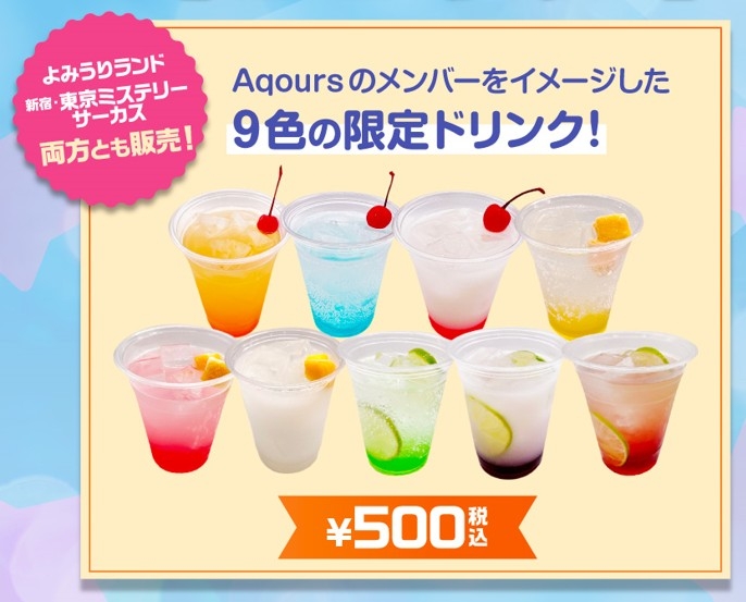 株式会社SCRAP(所在地:東京都渋谷区、代表者:加藤隆生)は、オールメディアで展開するスクールアイドルプロジェクト「ラブライブ!サンシャイン!!」とのコラボレーションイベント『輝け!Aqoursぬまづフェスティバル in よみうりランド』より、イベントとコラボしたドリンクの販売が決定いたしました。
