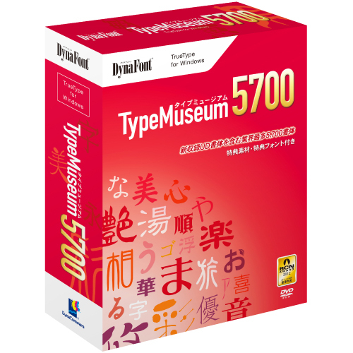 『TypeMuseum 5700』は、今年6月の販売開始よりご好評いただいております「DynaFont TypeMuseum 3710+1960 TrueType for Windows/Macintosh」のリニューアル版で、「TypeMuseum 3710+1960」にUDフォントなどダイナフォント新8書体を追加収録並びに、特典イラスト素材を一新したワイドパッケージです。