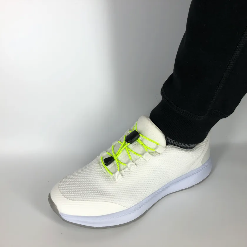 これまで使用していたパーツをアップデートしより操作性を向上させ、靴紐はリフレクター入りのゴム紐を使用することで、カンタンな脱ぎ履きだけでなく、街灯や車のライトにも反射し、夜のエクササイズにも安心してお使いいただけるようになりました。