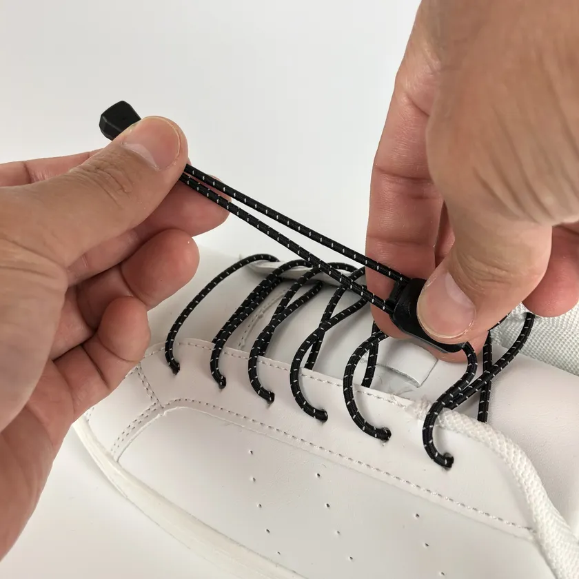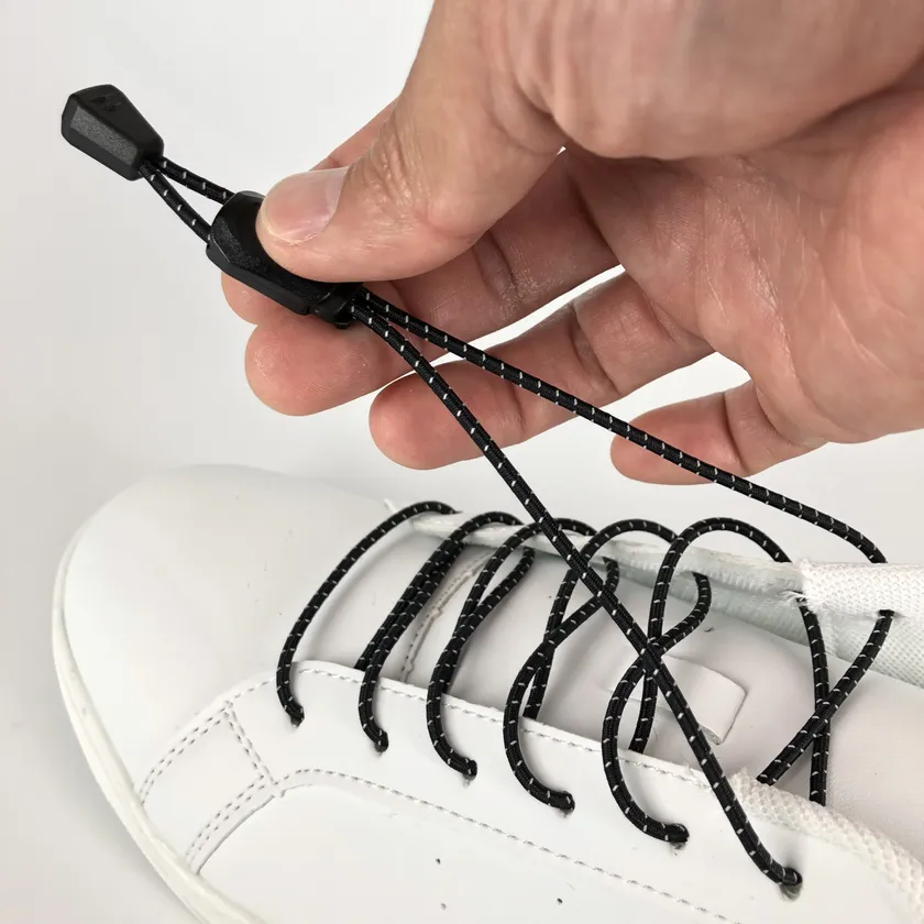 伸縮性の高いゴム紐を使用しており、スムーズで素早い靴の脱ぎ履きが可能です。特に、靴への足入れが非常にラクで、外出前の煩わしさが解消されます!普段履きであれば、靴紐を緩めにセットすることで調整なしでも快適にご使用いただけます。
