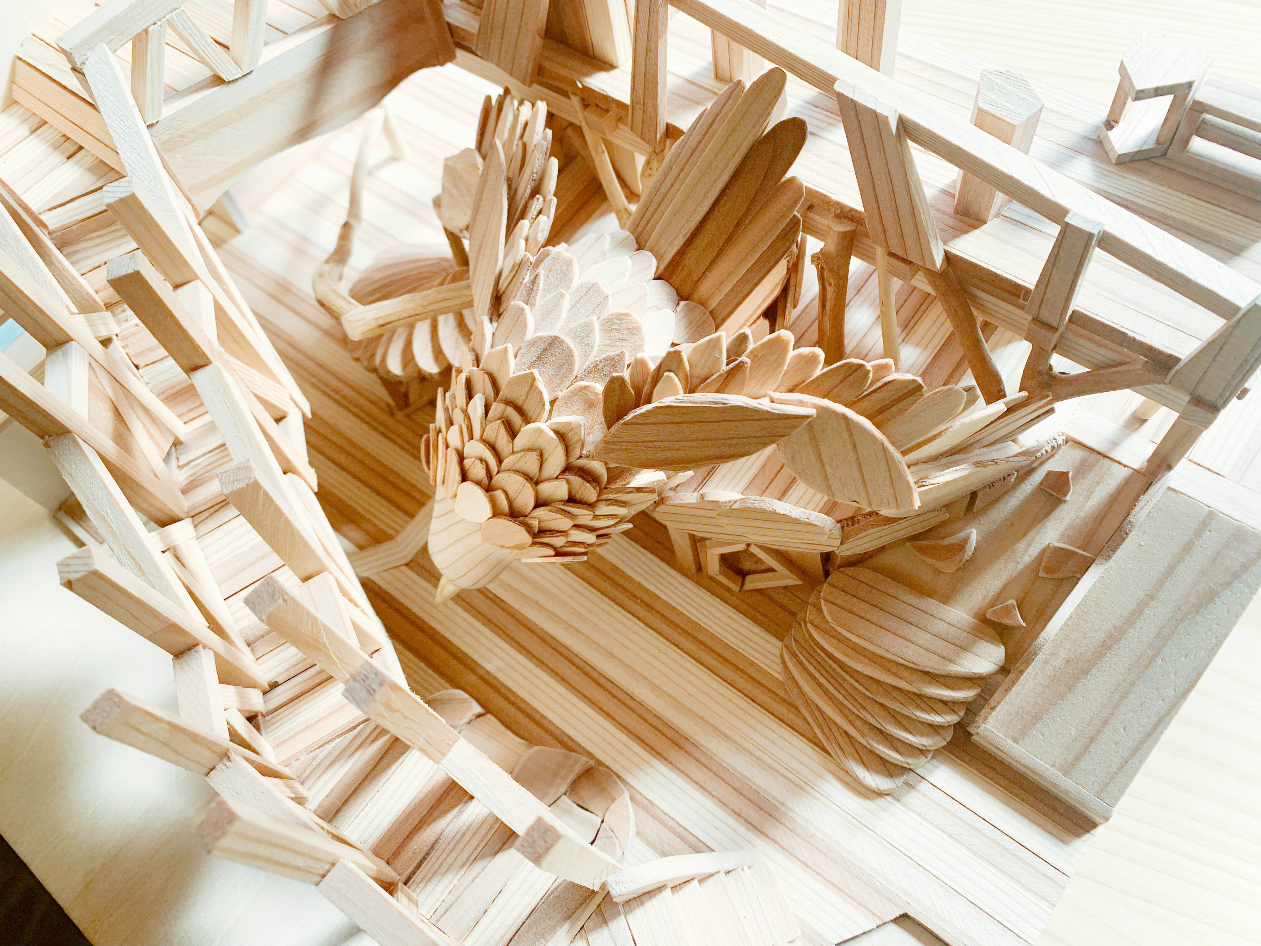 家づくりと同じ岐阜県東白川村の材を中心に国産無垢材のみを使用し、全て無塗装のため万が一、子どもが舐めても安心です。また、メインシンボルで遊具でもある「モリハリプー」には産地と生産ラインを証明する国際的認証である「FSC認証(R)」を受けた木材だけを使用しています。