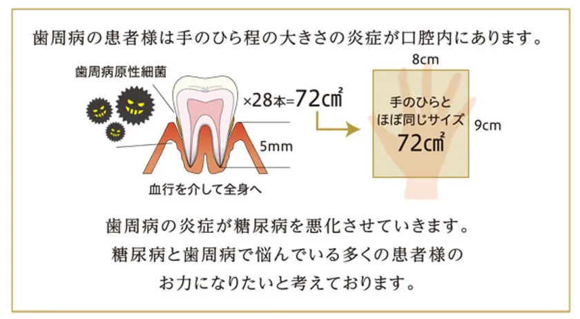 糖尿病と歯周病で悩んでいる多くの患者様のお力になりたいと考えております。