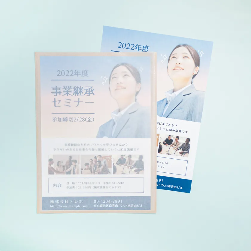 紙製クリアファイルに入れた印刷物(左)と通常の印刷物(右)の比較