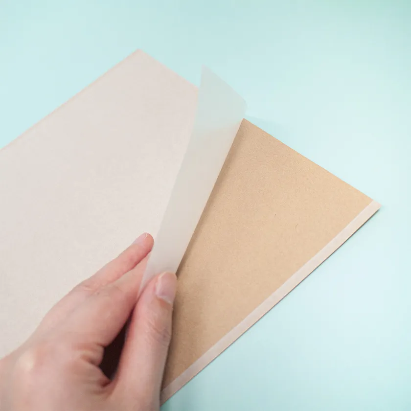 グラシン紙部分をめくった様子(クラフト面の内側は艶面)