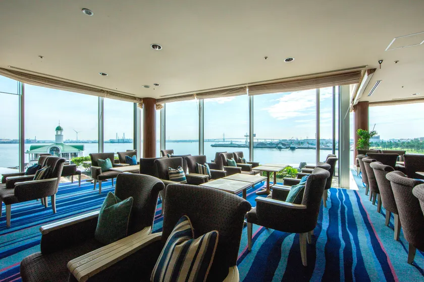 横浜港を一望できる開放感あふれるロビーラウンジ。海辺のリゾートをイメージした空間は、まるで豪華客船で旅をしているような寛ぎのひとときを演出します。