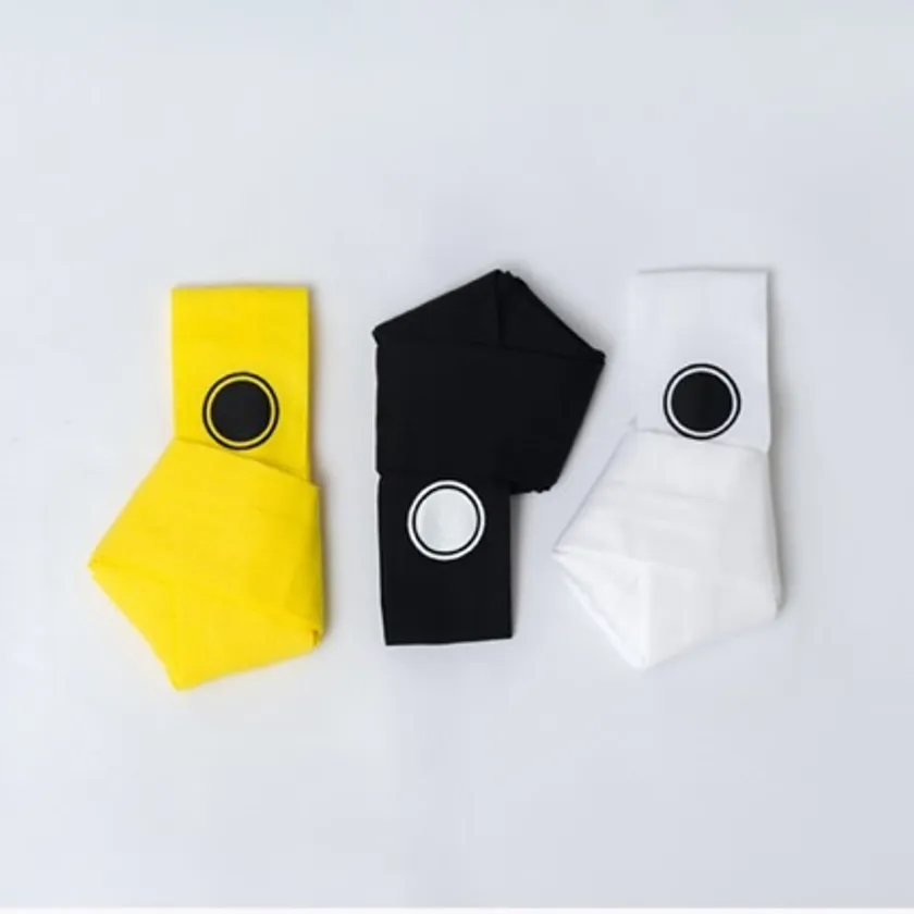 薄地で柔らかい、平織の新モス素材を使用した腰紐です。巻き始めがわかりやすいよう、中央にロゴマークを配置しています。ポップなイエローにホワイト、ブラックの3色展開。
