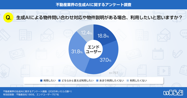 不動産業界特化のDX支援サービスを展開する、株式会社いえらぶGROUP(本社:東京都新宿区、代表取締役:岩名泰介、以下「いえらぶGROUP」)は、不動産会社・エンドユーザーに対して「不動産業界の生成AIに関するアンケート調査」を実施しました。不動産会社186名、エンドユーザー757名、有効回答943件の調査結果を発表します。