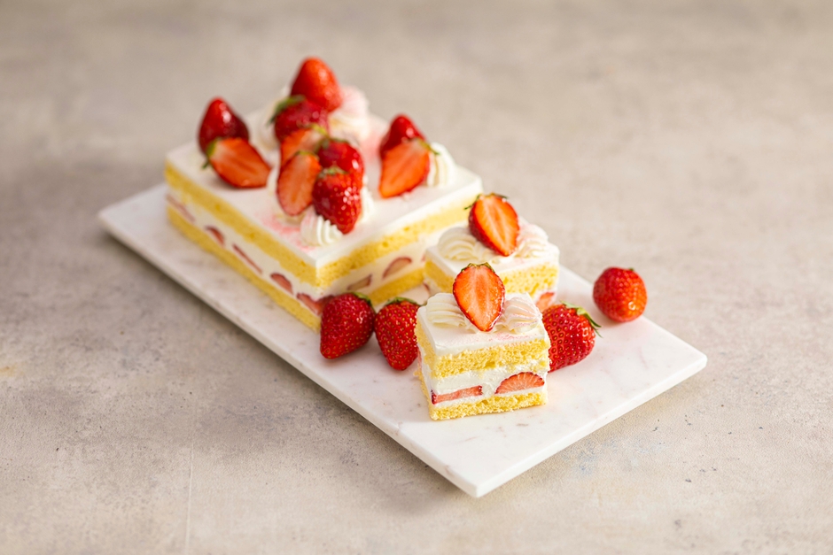 ふわふわのスポンジにホイップクリームといちごをサンドした定番ショートケーキ。