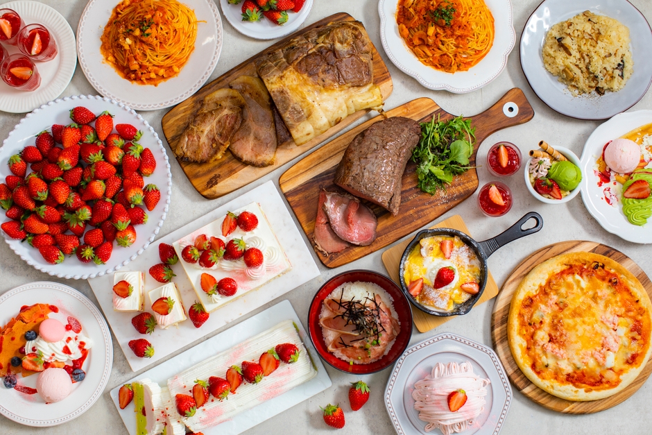 国産のみずみずしいいちごが楽しめるスイーツメニューや、期間限定のお食事メニューを取り揃えました。