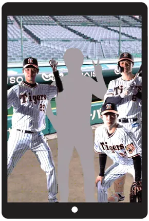 「矢野燿大監督」、「糸原健斗選手・梅野隆太郎選手・近本光司選手」、「高(※1)橋遥人選手・中野拓夢選手・佐藤輝明選手」、「トラッキー・ラッキー・キー太」の4つのフレームを選択し、動画で登場する監督、選手、マスコットとの写真撮影をお楽しみいただけます。