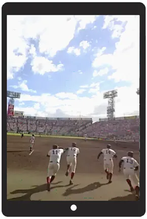 タブレットをグラウンドにかざすと、その場で第100回全国高等学校野球選手権記念大会決勝戦の360°映像を体験することができます。