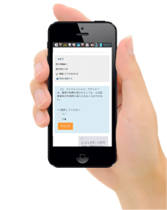 問題集の問題をWEB上でクイズ感覚で解答できる専用システムをご用意しています。外出先や自宅でくつろぎながら、アウトプットが簡単にできます。通勤/通学時間も有効に使える便利ツールです。