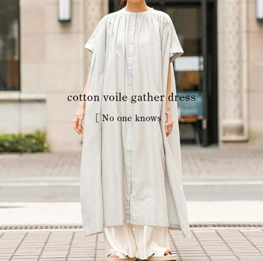 風合いのある、薄地で軽いインド製のコットンボイル生地(綿100%)を使用したワンピース。ギャザーでふんわりとしたシルエットと、程よく透けるシースルーの生地感がジメっとした蒸し暑い気候に涼感をプラスしてくれます!