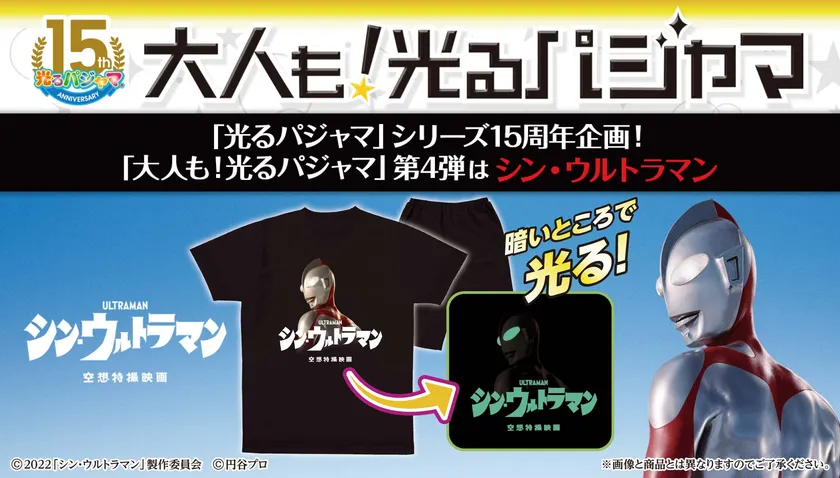 株式会社バンダイ ファッションブランド事業部では、映画『シン・ウルトラマン』が2022年5月13日(金)に公開されたのを記念し、『大人も!光るパジャマ(シン・ウルトラマン)』(4,400円 税込/送料・手数料別途)の予約受付を、バンダイナムコグループ公式通販サイト「プレミアムバンダイ」内ショップ「バンダイアパレルストア」( https://p-bandai.jp/apparel/?rt=pr )にて2022年5月20日(金)11時に開始いたします。(発売元:株式会社バンダイ)