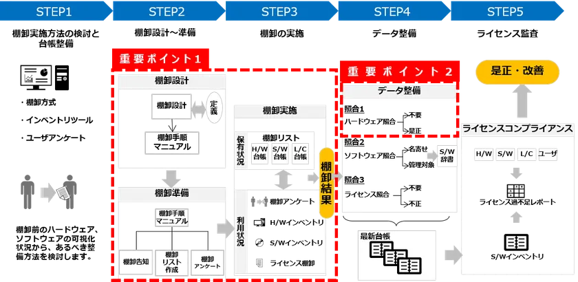 IT資産管理ツールは導入したが、本当に正しいIT資産管理台帳が作成されているか疑問である、または棚卸はしたものの、どのデータが不整合か、データの問題を紐どけないという企業様向けのパッケージです。