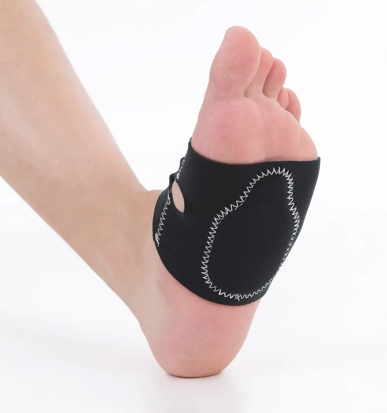 国産ネオプレンのフィット感の良いパワーアーチサポート、チタン配合ひょうたん型パットが支えます。