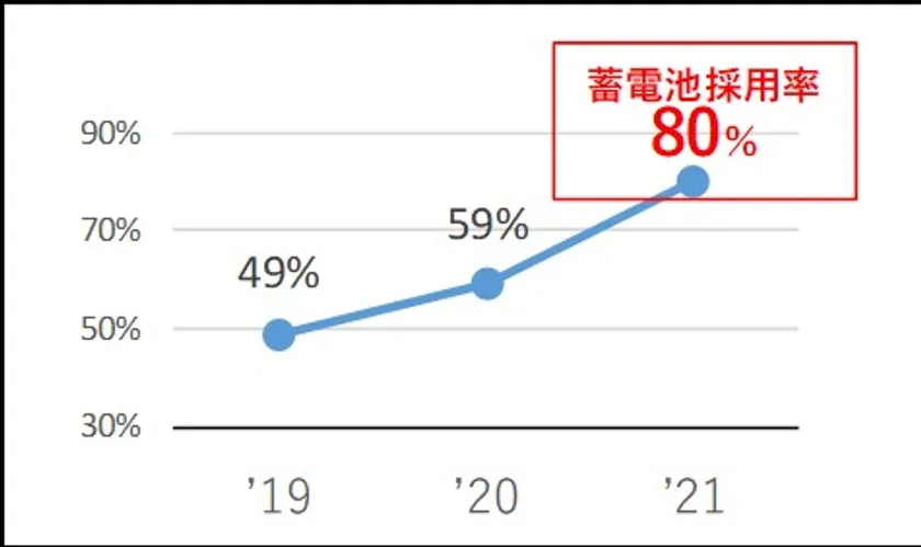 ▲当社の蓄電池採用率