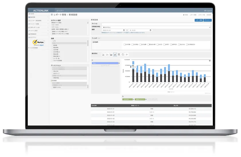 アクションリンクは、データによって顧客理解を深め、顧客一人ひとりにあわせたメッセージ配信を自動化できる顧客中心CRMプラットフォームです。