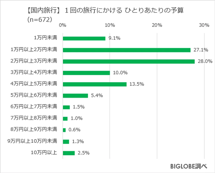 物価上昇・円安でも「国内旅行したい」約7割、 「海外旅行」は約3割 BIGLOBEが「お金に関する意識調査」第2弾を発表 ~国内旅行の予算はひとり3万円未満が6割、 海外旅行は20万円未満が7割~