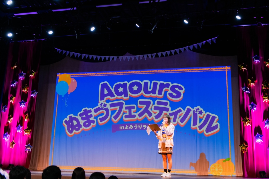 そうしてフェス本番の1時間をまた心行くまで堪能し、ついにAqoursぬまづフェスも終盤に。再び広場に響くアナウンスに従い、助っ人さんたちや浦女生たちは、今度はオープニングの会場にもなったらんらんホールに集合しました。