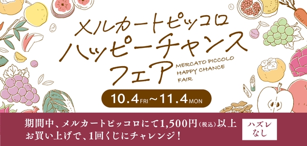都市型商業施設『淀屋橋odona(オドナ)』(大阪市中央区今橋4-1-1)では、10月4日(金)から11月4日(月・休)の期間中、1F メルカートピッコロにて「メルカートピッコロハッピーチャンスフェア」を開催いたします。