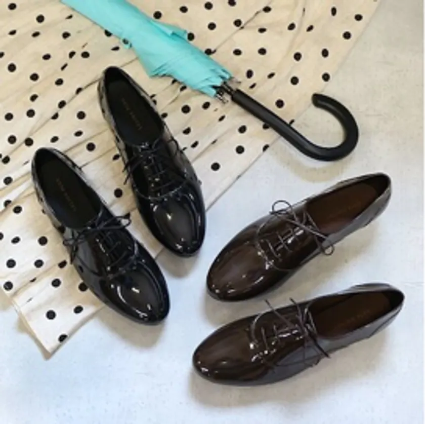ビニール素材のレースアップシューズ。甲の部分に施された縫い目はフェイクのため、隙間から雨が入る心配はなく、程よい2cmヒールで歩きやすさとおしゃれが叶います。表面の柔らかな素材は足あたりが良く、取り外し可能な厚さ8センチのインソールは、スタイルアップと歩行時の疲れを緩和化してくれる効果も。使いやすいブラックとダークブラウンの色展開は、オンオフ問わず大活躍間違いなし。