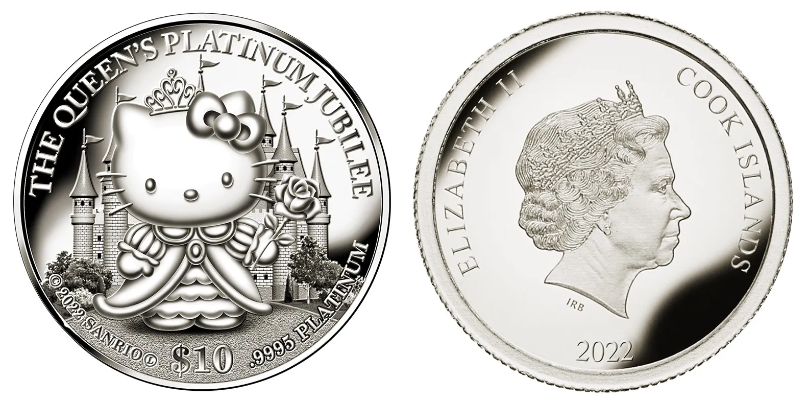 英国王室初のプラチナジュビリーを祝福する、ハローキティデザインの記念コイン。