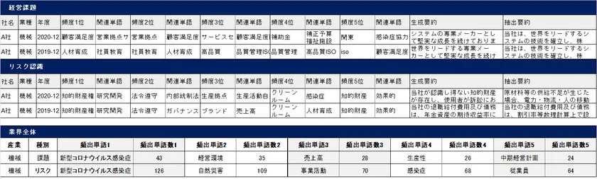 ・有報の「経営課題」と「事業等のリスク」について2年分を個社別、業界別分析。