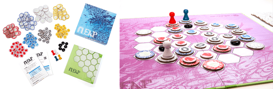 今回の「いちかわテーブルゲームマルシェ」では、秋発売予定の新作「fLEAP」を先行して体験ご購入いただけます。