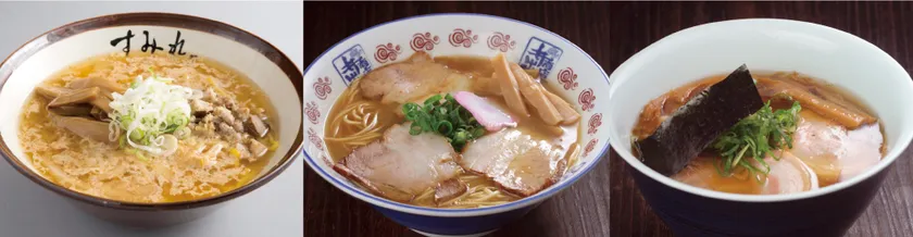 左から、札幌「すみれ」、和歌山「井出商店」、「支那そばや」。