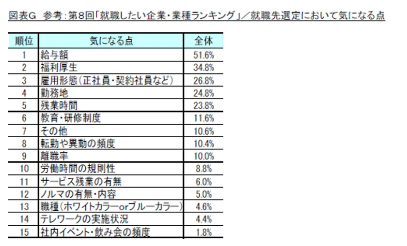図G_参考:第8回「就職したい企業・業種ランキング」/就職先選定において気になる点