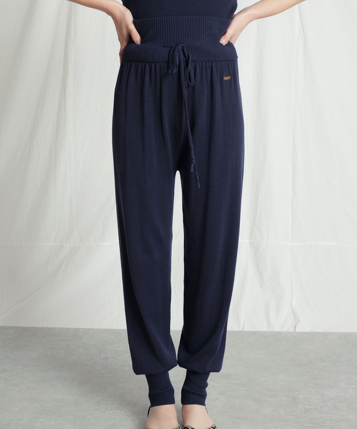 細身のニットパンツもガードル内蔵でスタイルアップ