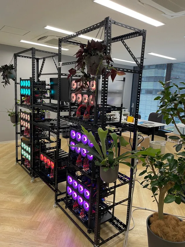チーム全員で組み立てができるようにしているためもしマイニングマシンが動かない等の問題があれば通知を行い平均して24時間以内に対応可能な体制を整えております。