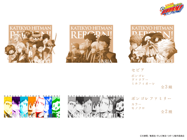 また、2020年6月に販売した描き下ろしイラストを使用したグッズの再販売も行います。描き下ろしキャラクターは、グレーのスーツをシックに着こなしたツナ&リボーン、獄寺、山本、雲雀、骸の6人。