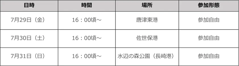 ※開催時間は予定です。正式な時間は、改めてJR九州ホームページ等にてご案内いたします。