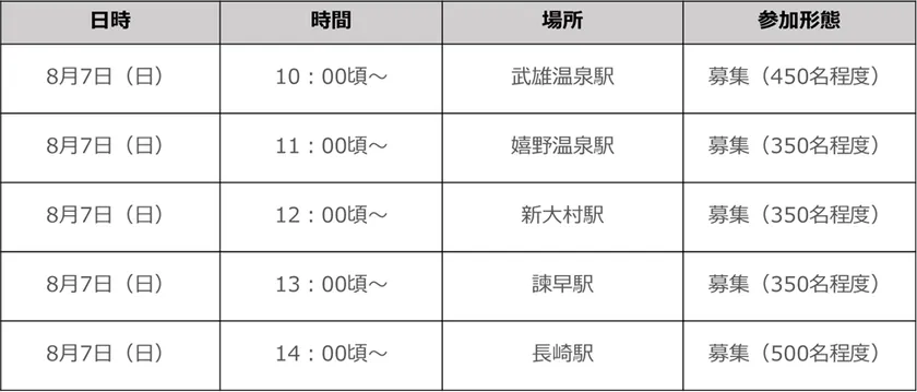 各駅でのご参加については、6月末日を目途にJR九州LINE公式アカウントよりお知らせします。