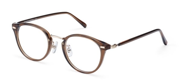異素材を組み合わせたコンビネーションフレーム。柔らかい曲線のフロンフォルムと全体的に細めに仕上げたデザイン。重い印象にならないようにクリア系のアセテート生地を中心に採用しています。