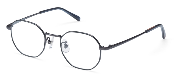 直線的でシャープなオクタゴン(八角形)シェイプのメタルフレーム。ヨロイからテンプルにかけて特徴的なデザインを施しています。