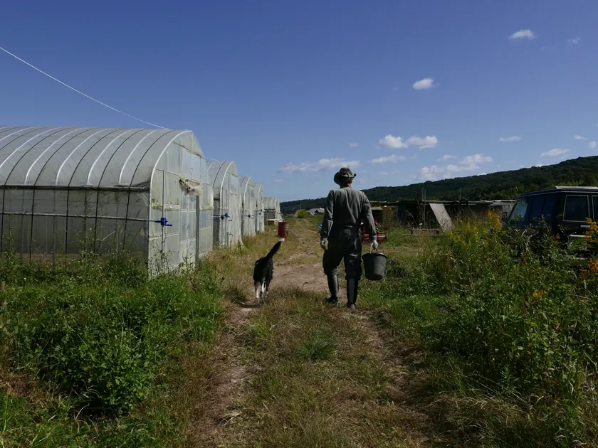 小ネギ農家さんと愛犬