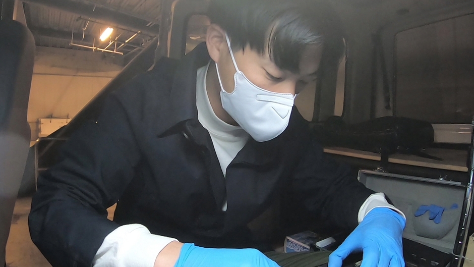 夜10時半。スマホの出張修理人・森井涼介さんのもとへ修理依頼の電話がかかってきました。「明日の仕事にどうしても必要だからすぐに直してほしい」と焦る依頼者のご自宅に到着したのが夜11時。画面がまったく見えないほどバキバキに割れてしまったスマホの画面を車内で修理していきます。精密機器だけに慎重に扱いながら新しい画面に取り替えて作業完了。1日に3件から4件ほどの修理に対応する森井さん。「夜7時から深夜1時にかけてが多い」と話します。