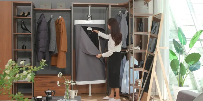 生活で気になるホコリやPM2.5、臭い、衣類のちょっとしたシワをつるすだけで毎日リフレッシュできる衣類ケア家電です。「頻繁にクリーニングに出せない」「クリーニングに出すまでではないけど、ケアしたい」そのような声にこたえて、販売いたしました。