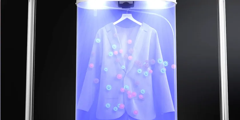 本体に搭載されているUVライトで洋服を照らすことで肺炎球菌・緑膿菌・黄色ブドウ球菌を99.9%消去(※自社調べ)し、しっかり除菌できます。ヒーターの温風機能付きなので、まるでふわふわした新しい服のように蘇ります。