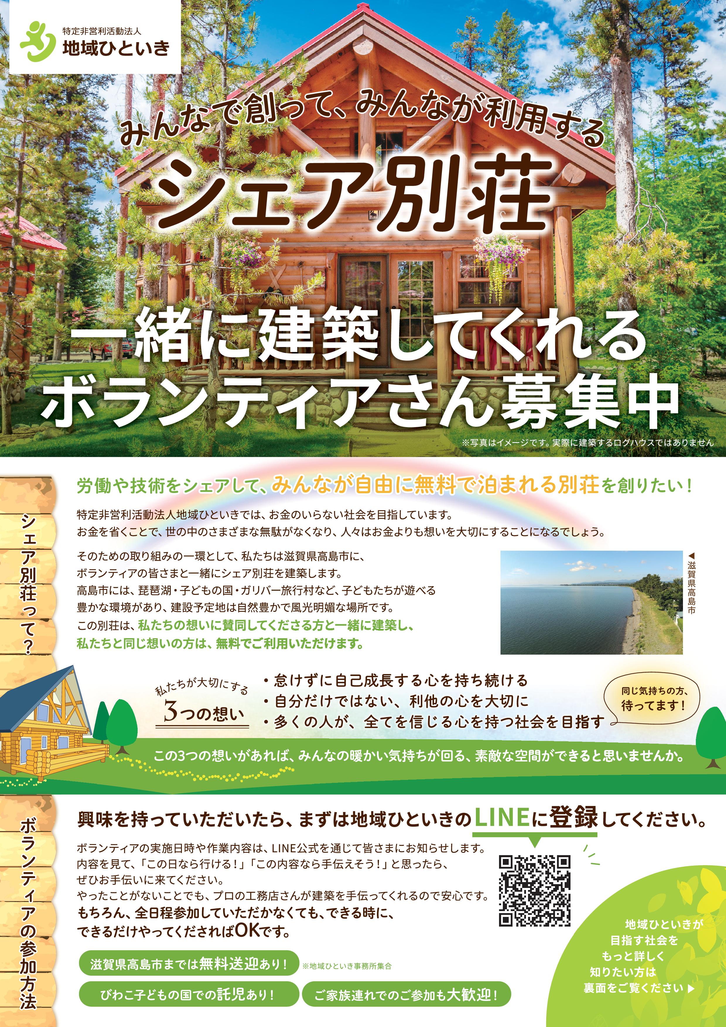 みんなで創って、みんなが利用する “無料シェア別荘建築”(滋賀県高島市)の クラウドファンディングを開始 ~お金を無くし、想いが廻る世界を目指して~