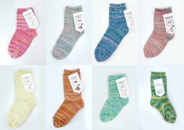 今回プレゼントされるチャリックスソックスは、奈良競輪に所属する競輪選手が、実際にS.Laboを訪れ、36色の綿糸の中からセレクトしたカラーで制作されています。