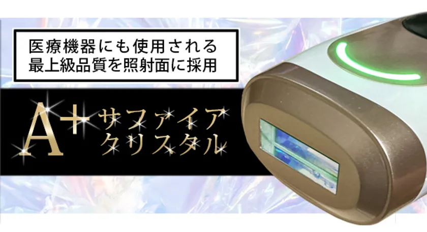 照射面には、医療機器にも使用される最上級品質の「A+サファイアクリスタル」を採用。冷却機能の冷感を効率よく伝えてくれ、照射時の熱さ・痛みを軽減してくれるので保冷剤なしで照射可能。マックスパワーでも熱さをほとんど感じません。