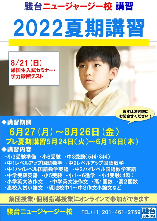 【駿台ニュージャージー校「2022 夏期講習」】