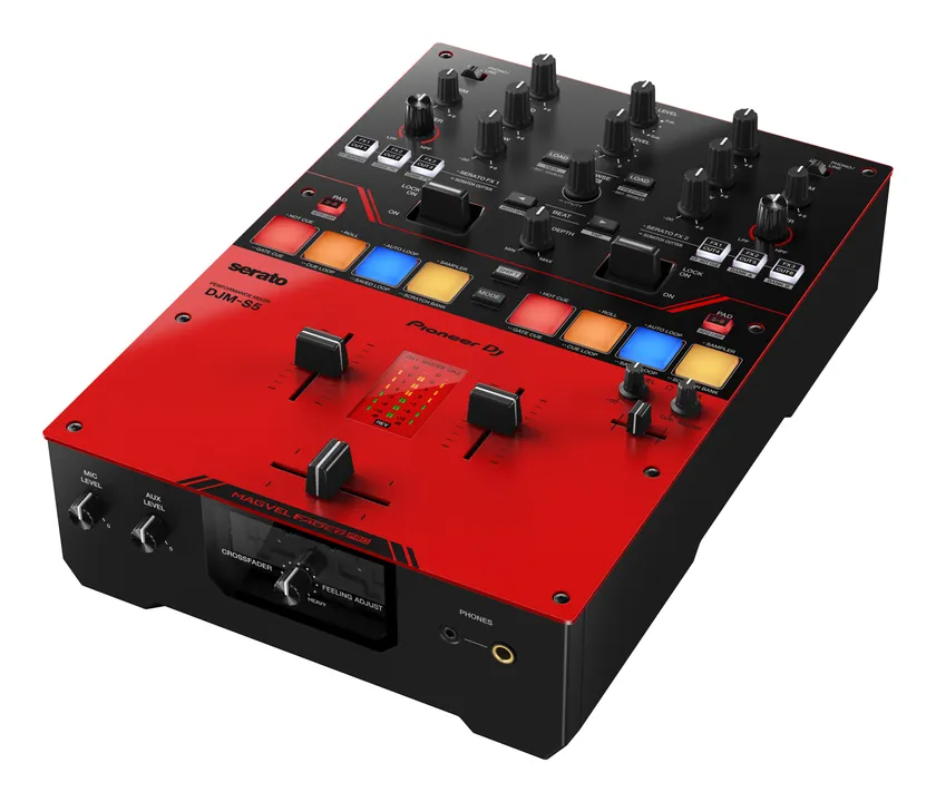 AlphaTheta株式会社は、Pioneer DJから、グロスレッドカラーが印象的な「Serato DJ Pro」対応のスクラッチスタイル 2ch DJミキサー「DJM-S5」を2022年6月初旬に発売します。プロフェッショナル仕様のレイアウトで、これから本格的なバトルDJスタイルの演奏を始めたい方やテクニックを向上したい方に最適なDJミキサーです。